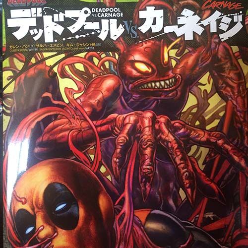 今回は本来別の本を紹介する予定だったが、本当は秋のうちに紹介する予定だったし何よりデッドプール週刊といいつつここ二週間くらい書いてないので今回はデッドプールの漫画を紹介だ。 というわけで「デッドプールVSカーネイジ」だ。 これ書いてる時間は現…